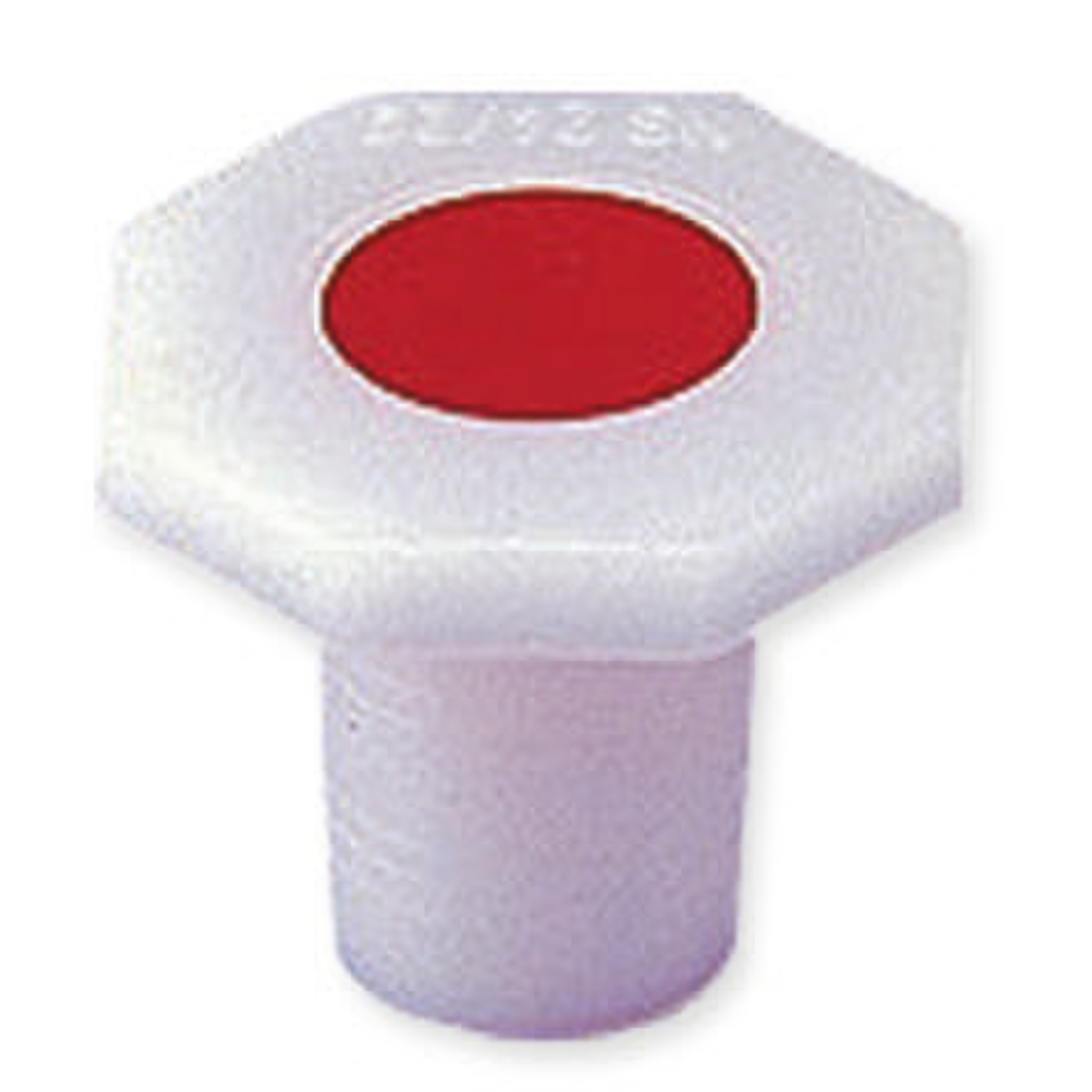 En polyéthylène (PE) blanc avec insert central rouge.