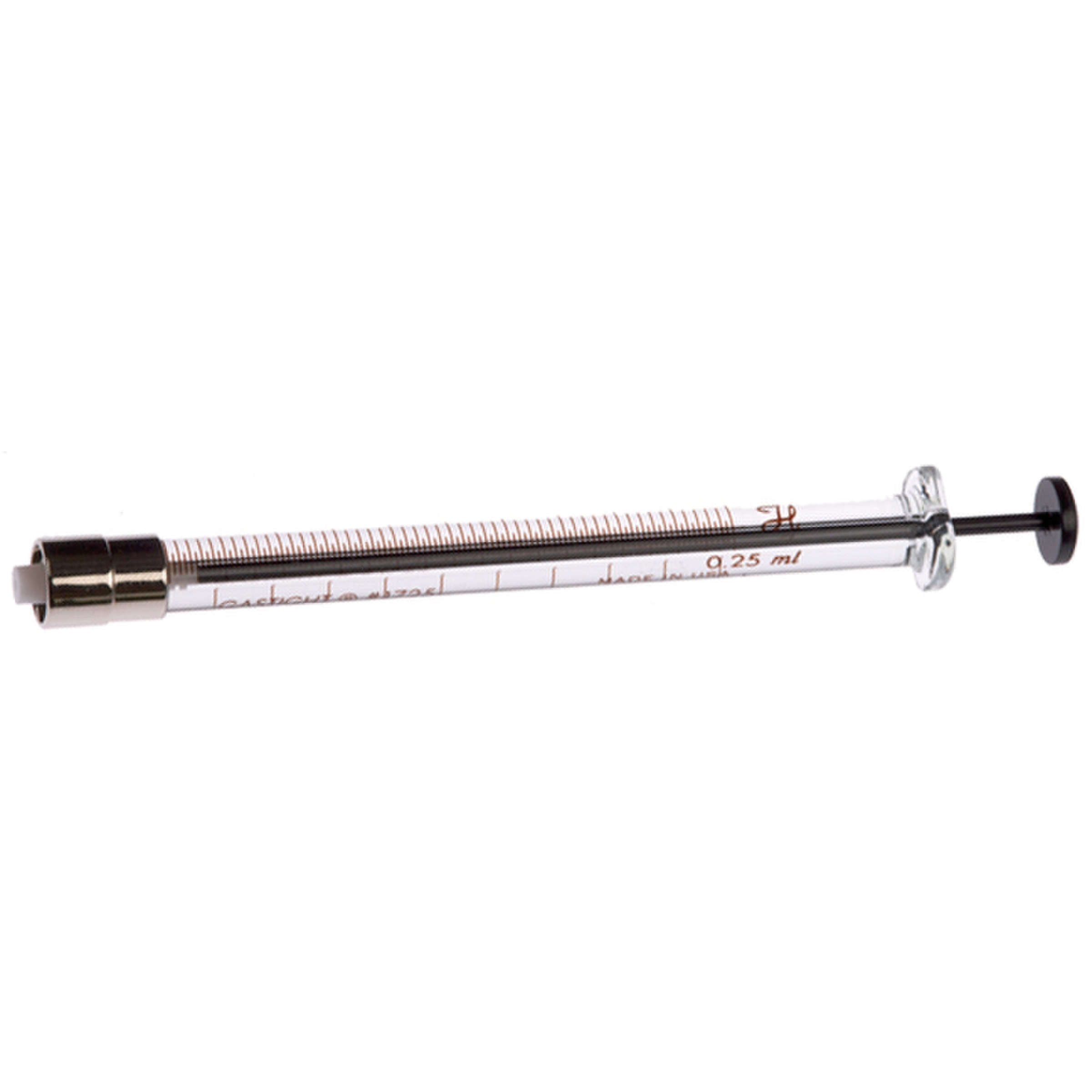 Microseringue N avec aiguille acier inox fixe cimentée dans le corps en verre.