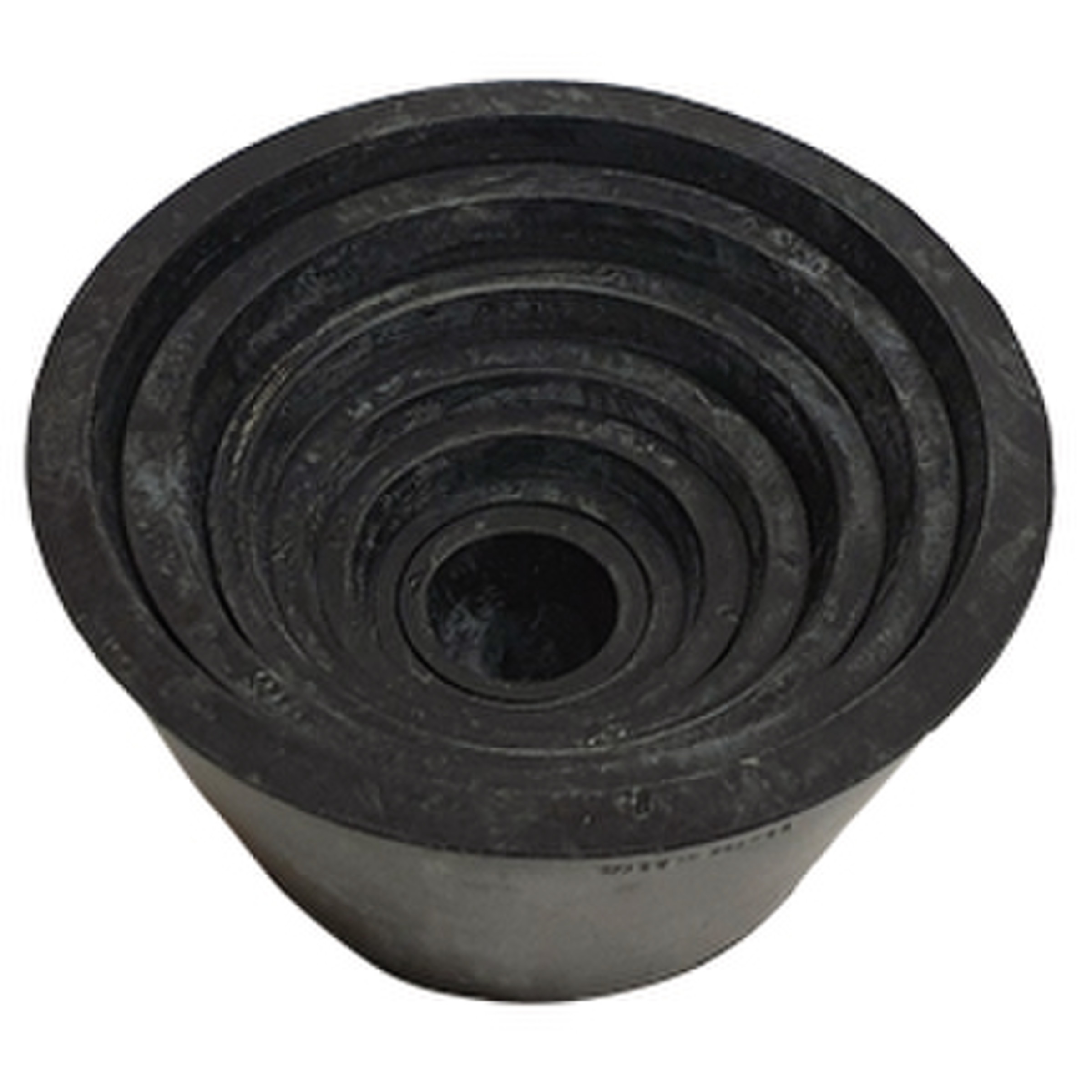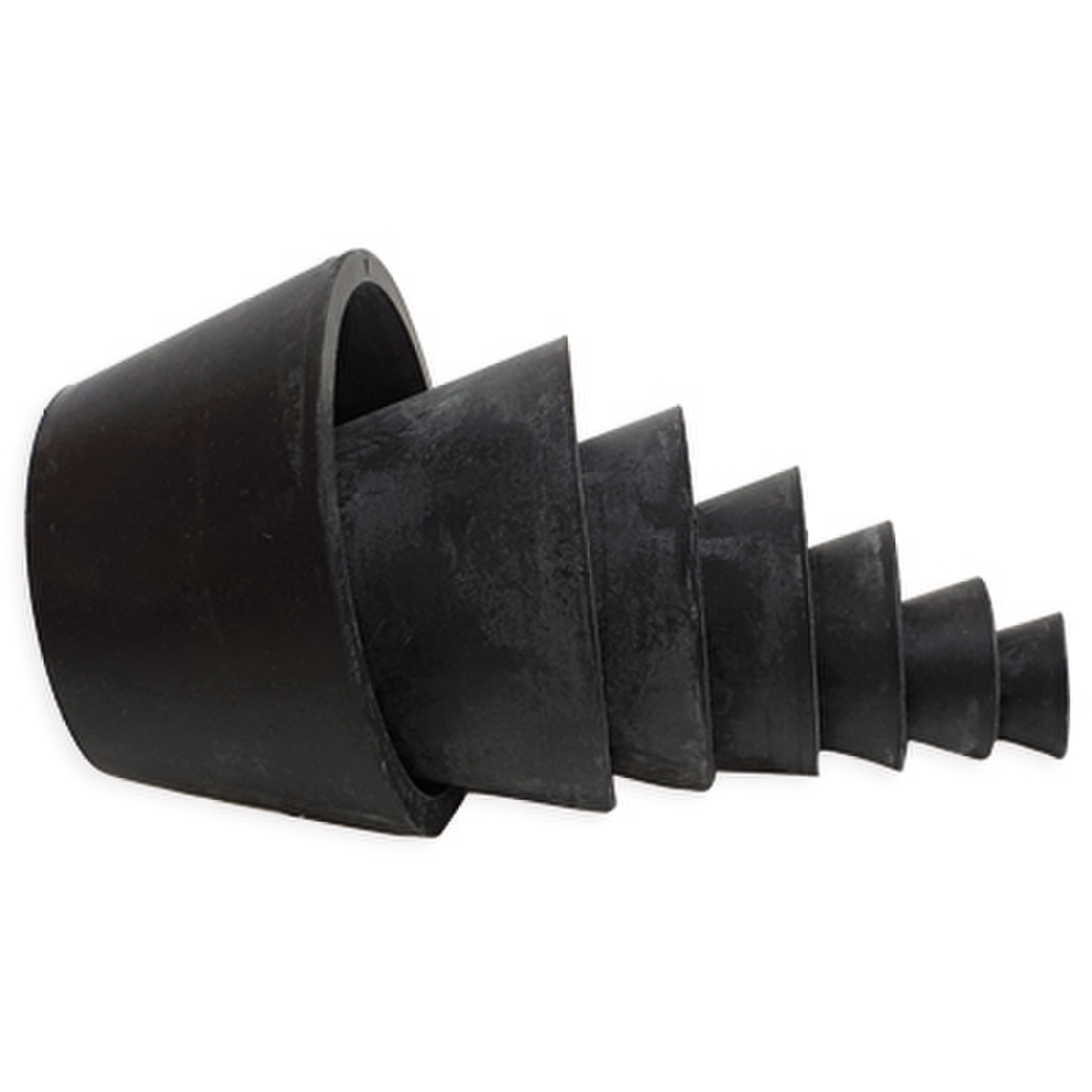 Cônes de filtration emboîtables en caoutchouc noir.