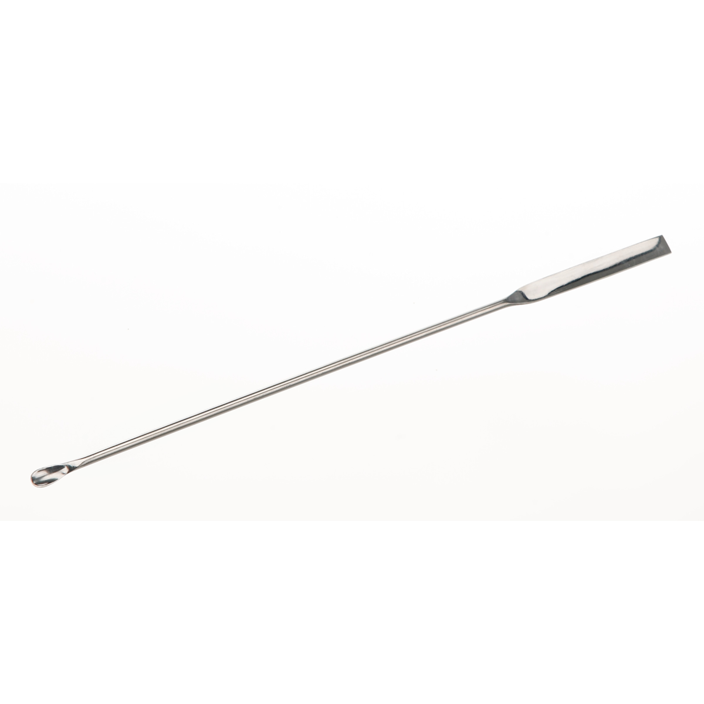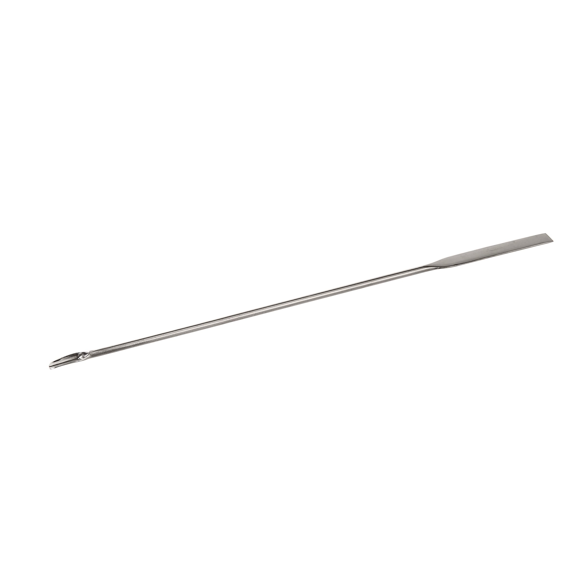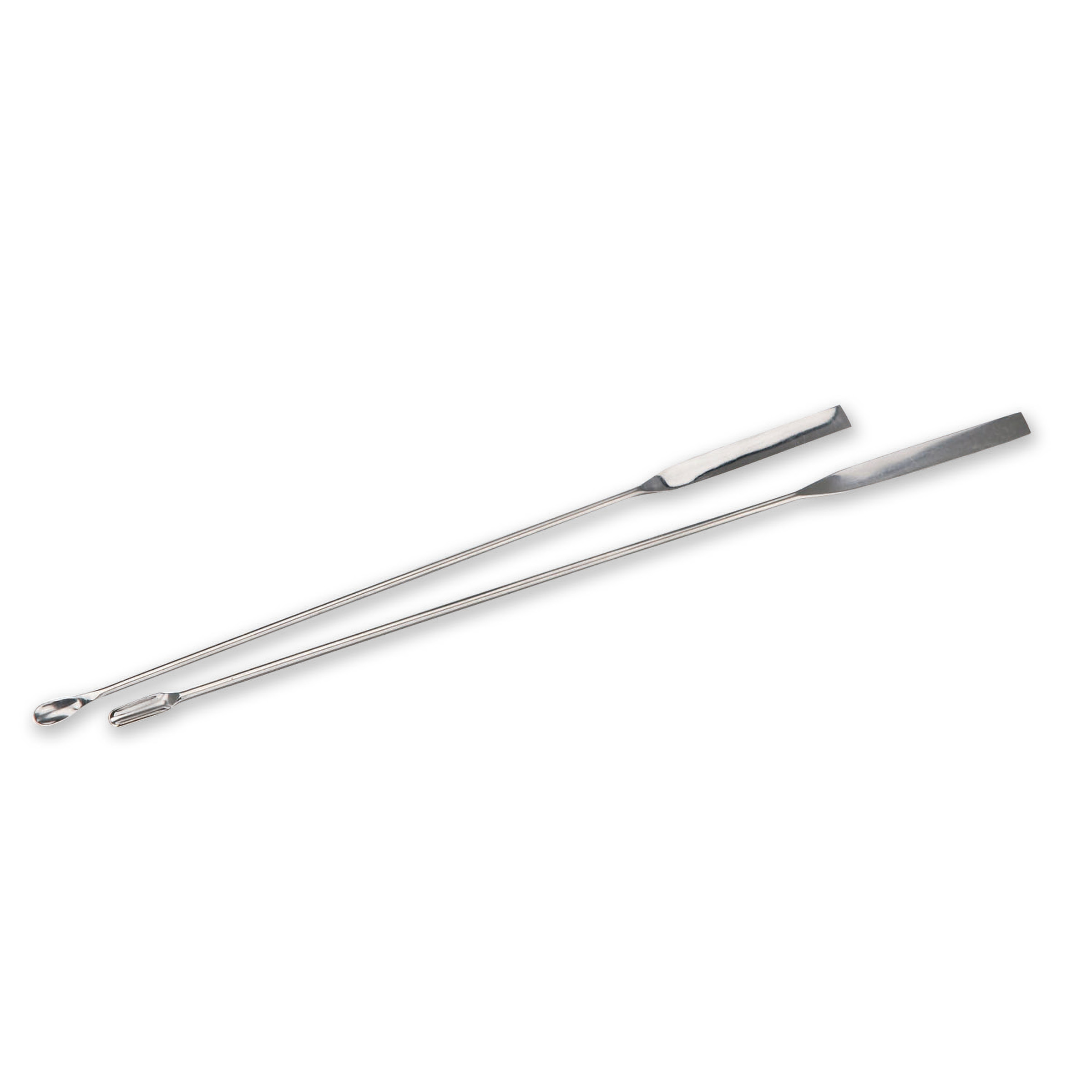 Une extrémité avec lame à bout carré et l'autre extrémité avec microcuillère de forme normale ou allongée.