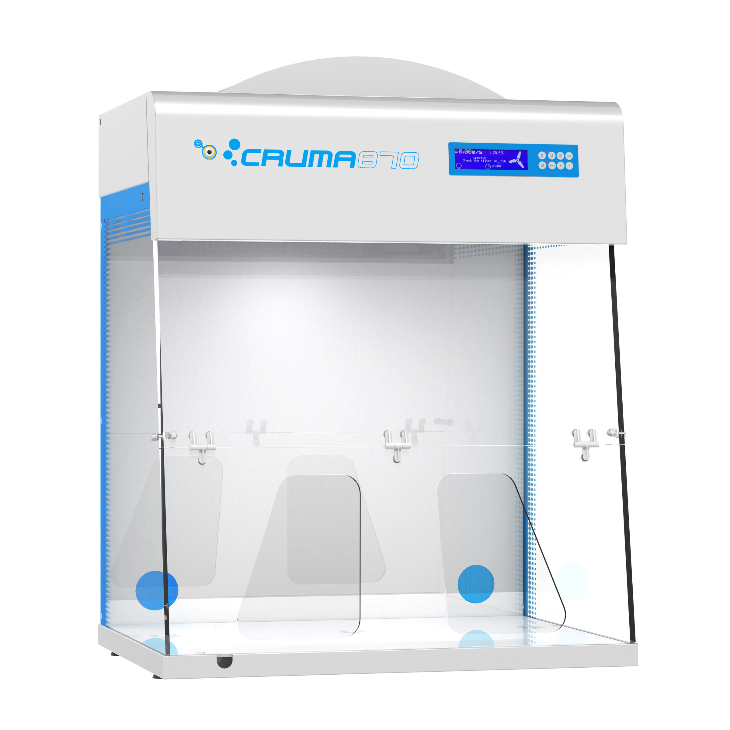 Enceintes de filtration à recirculation d'air pour produits chimiques et/ou particules de classe II selon la norme NF X 15-211. Utilisation avec un ou deux filtres. Livrées démontées. Panneau de commande électronique avec affichage de nombreux paramètres et informations utiles. Construction en tôle d'acier avec revêtement époxy. Parois en polyméthacrylate méthyl transparent (épaisseur 6 mm). Préfiltre de série en bio-fibres synthétiques classe G4 (EN779) Eclairage LED. Ventilateur silencieux 48dB. Filtre intelligent avec mini USB afin que ce dernier soit reconnu par la hotte pour identification du type de filtre installé, date d'expiration et n° de série. Plan de travail en verre avec bac de rétention. Compteur horaire de fonctionnement 60 heures avec alarme. Livrées à plat, dans une caisse en bois, très facile à assembler. A compléter par filtre à charbon actif ou filtre charbon actif + filtre HEPA contre les particules à choisir selon les produits utilisés. Type A: vapeurs organiques Type BE: vapeurs acides et organiques (30% max) Type F: formaldhéhyde, formol et dérivés Type K: ammoniac et amines Type ABEK: vapeurs mixtes (sauf formol)