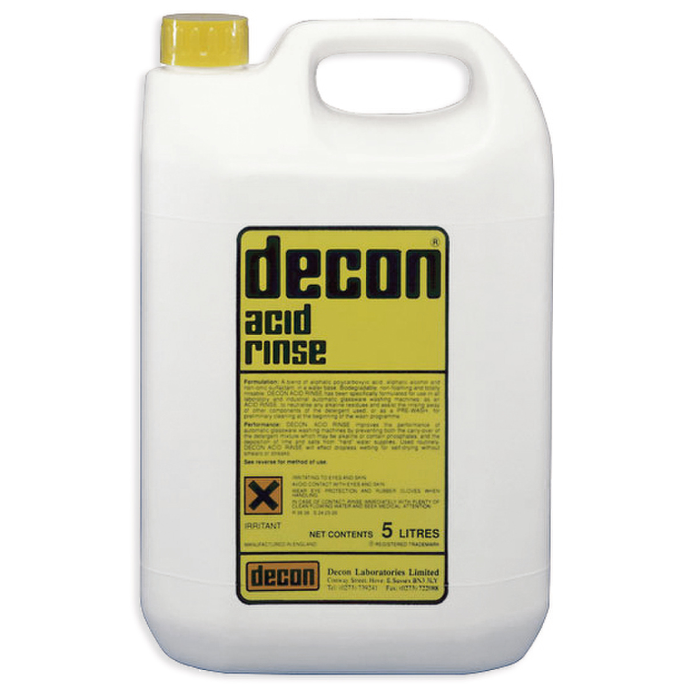 Neutralisant Decon® acide rinseProduit de rinçage acide (neutralisant) et/ou de prélavage (détergent préliminaire), utilisable dans les lave-verrerie.