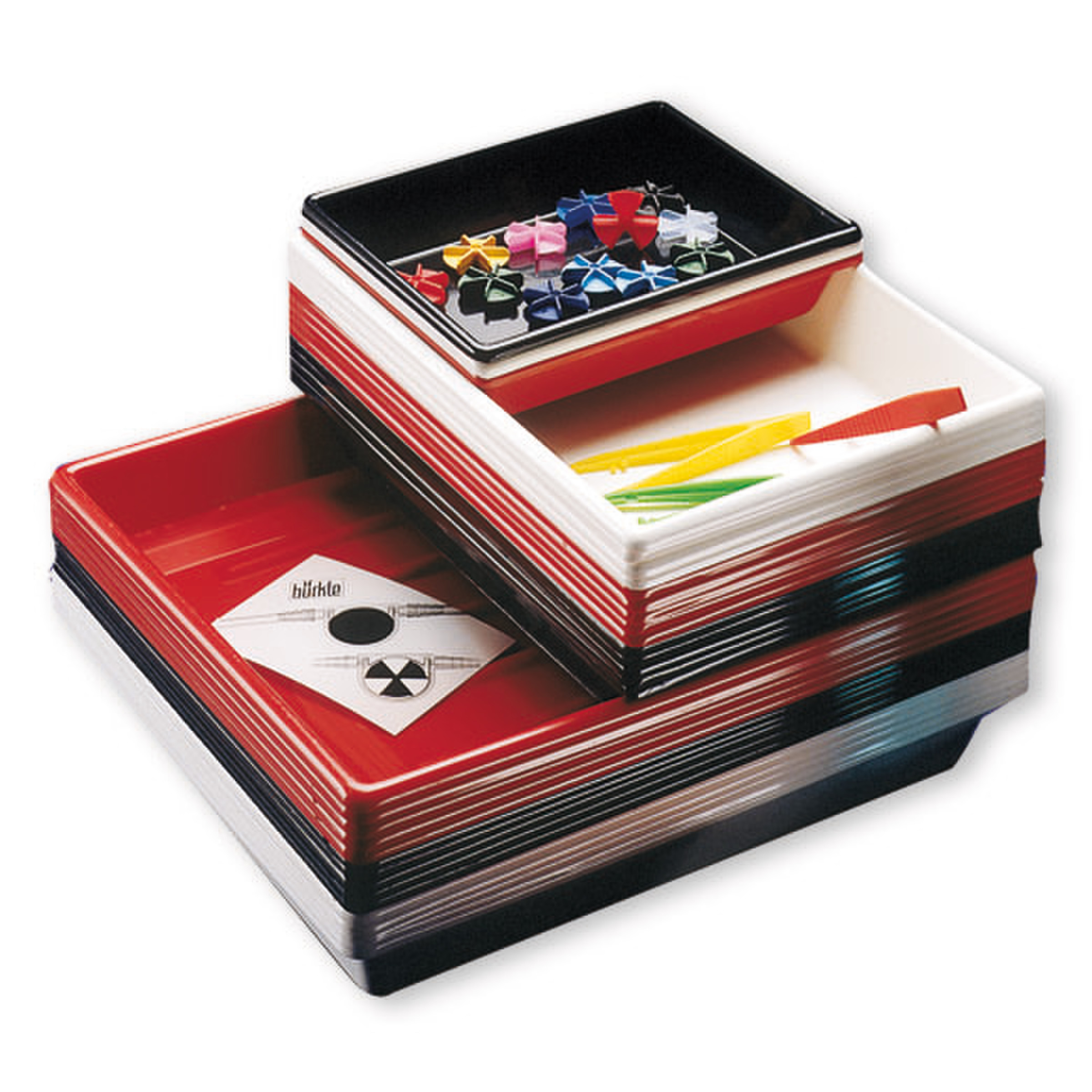 Bacs empilables à fond uni.