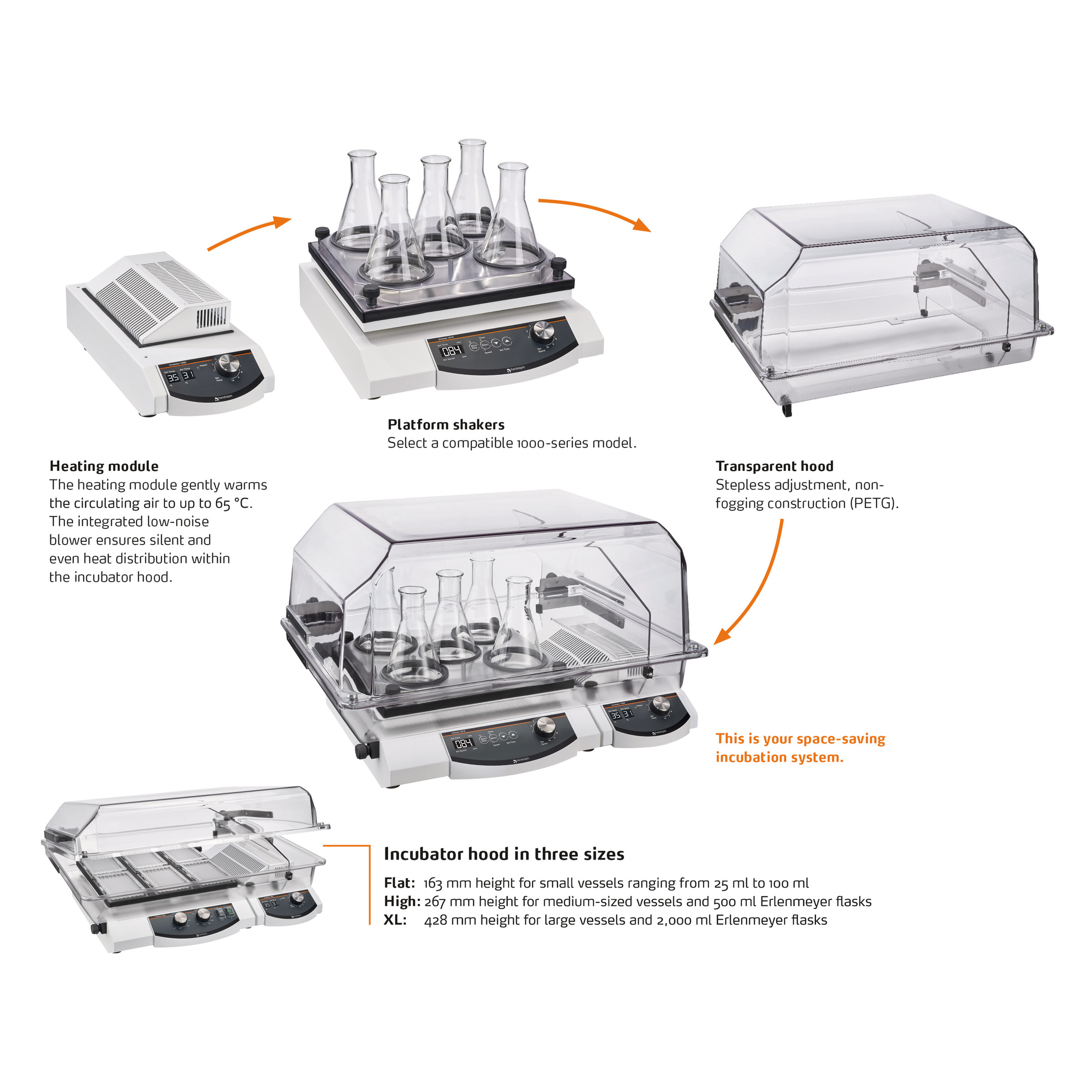 Permet de transformer les agitateurs Heidolph Unimax 1010, Promax 1020, Duomax 1030 et Polymax 1040 en incubateur agité.