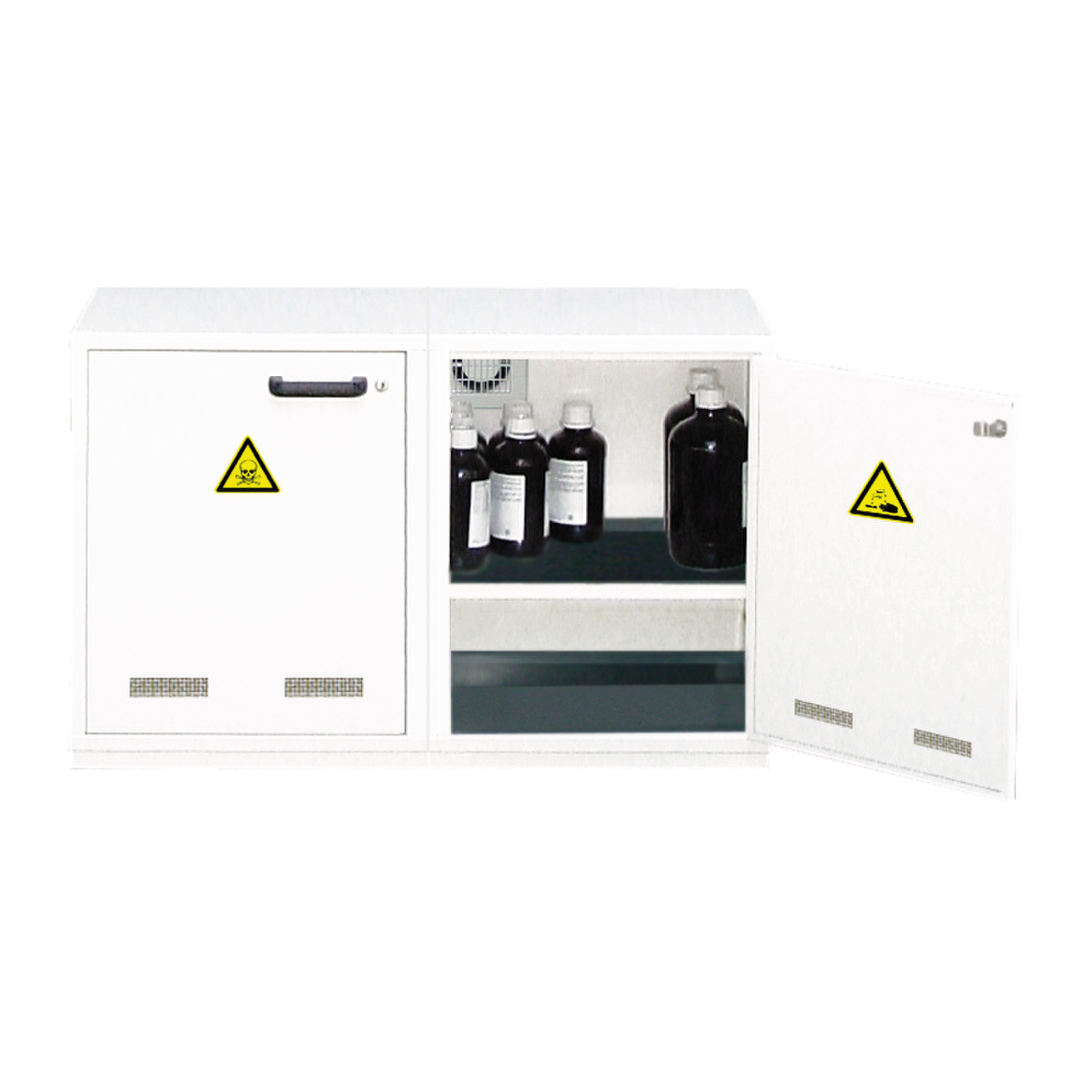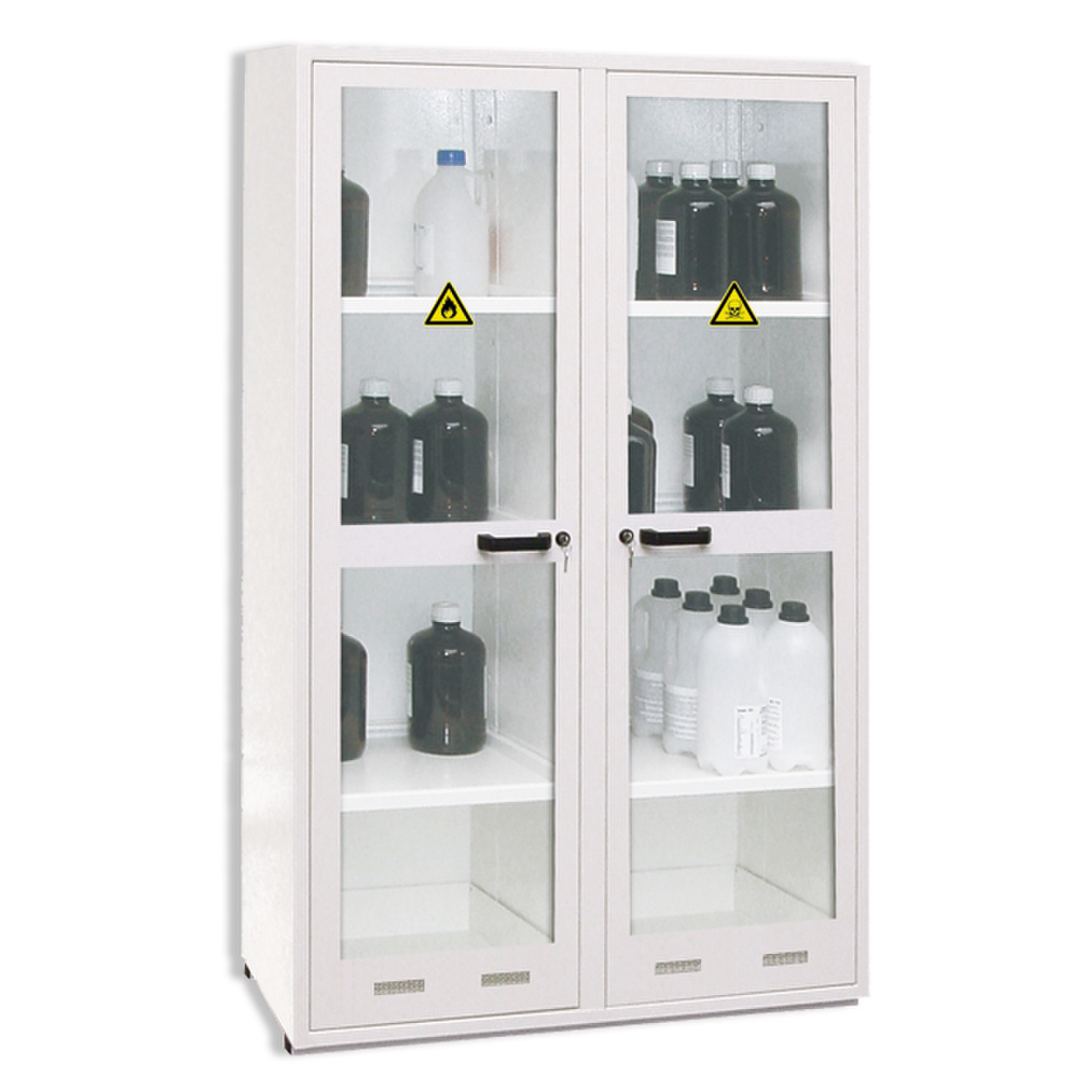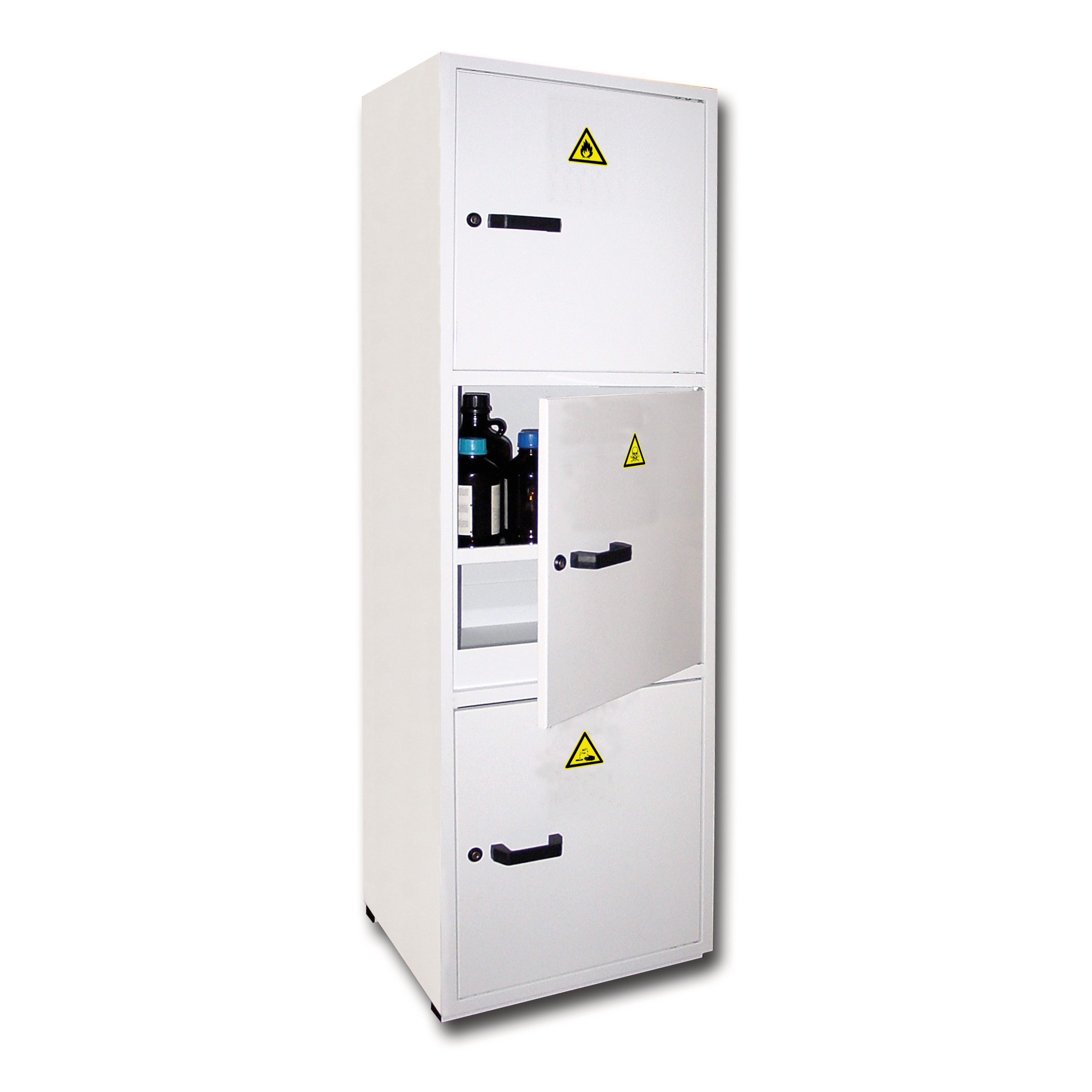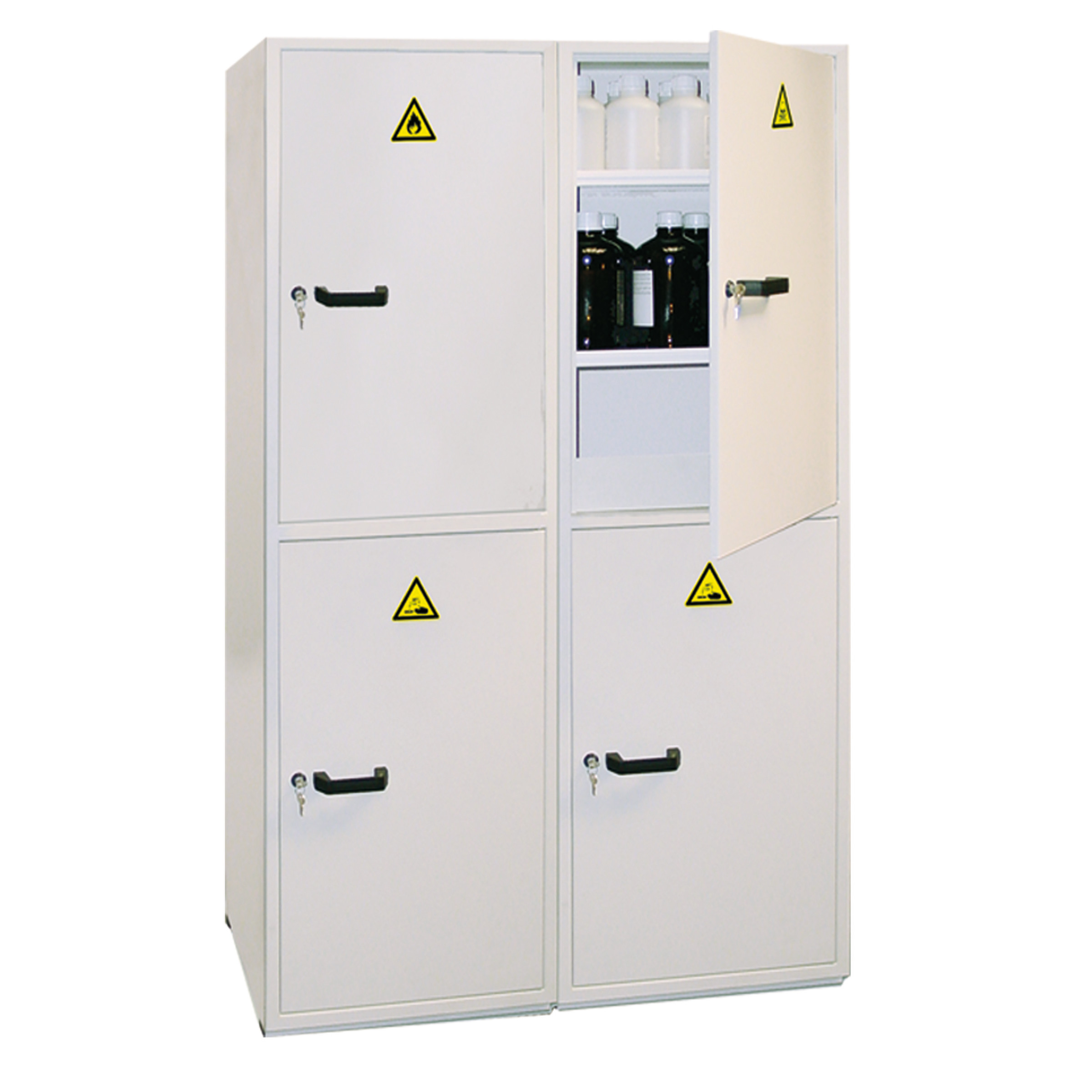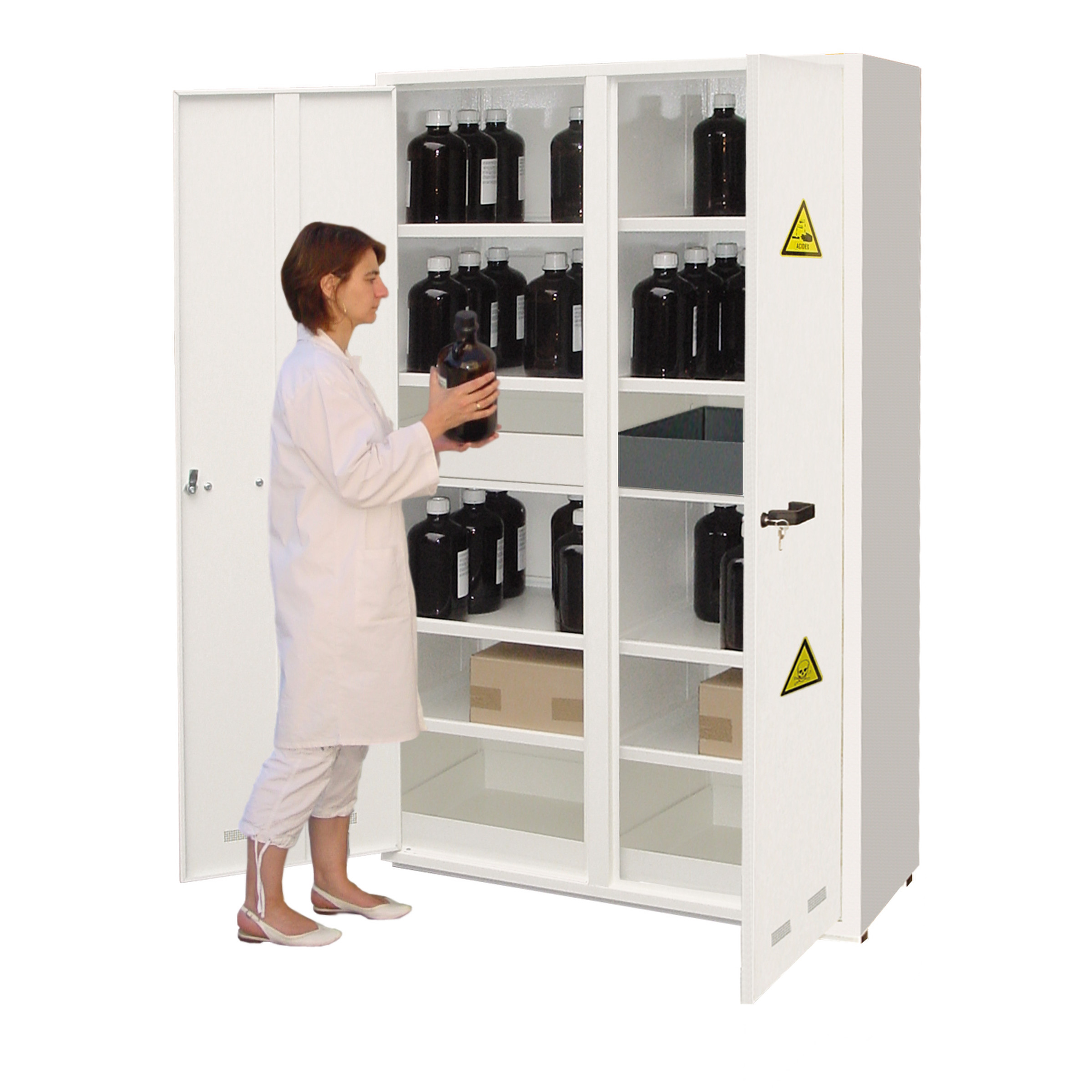 Ces armoires ne conviennent pas au stockage des produits très corrosifs (acide nitrique, sulfurique, chlorhydrique…).