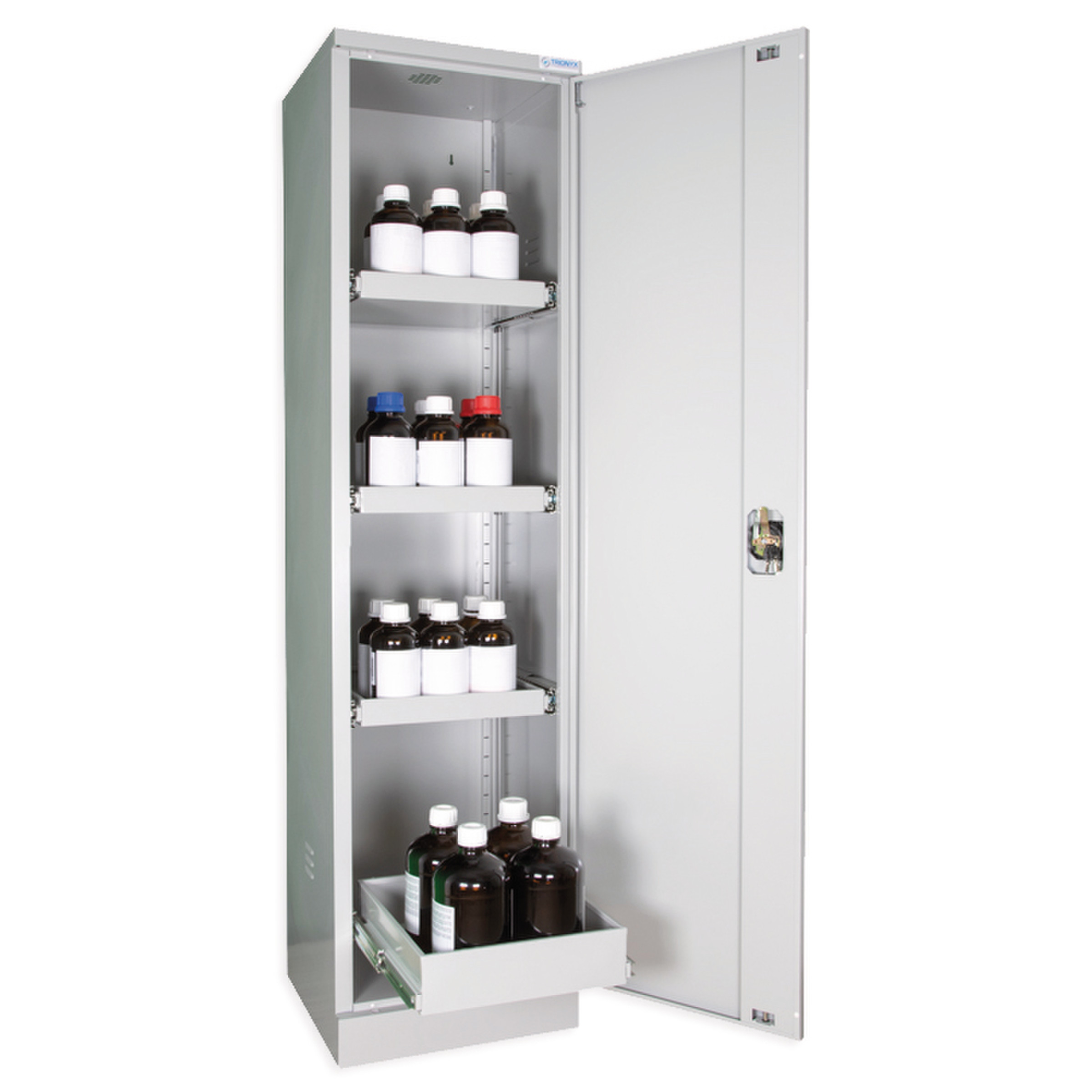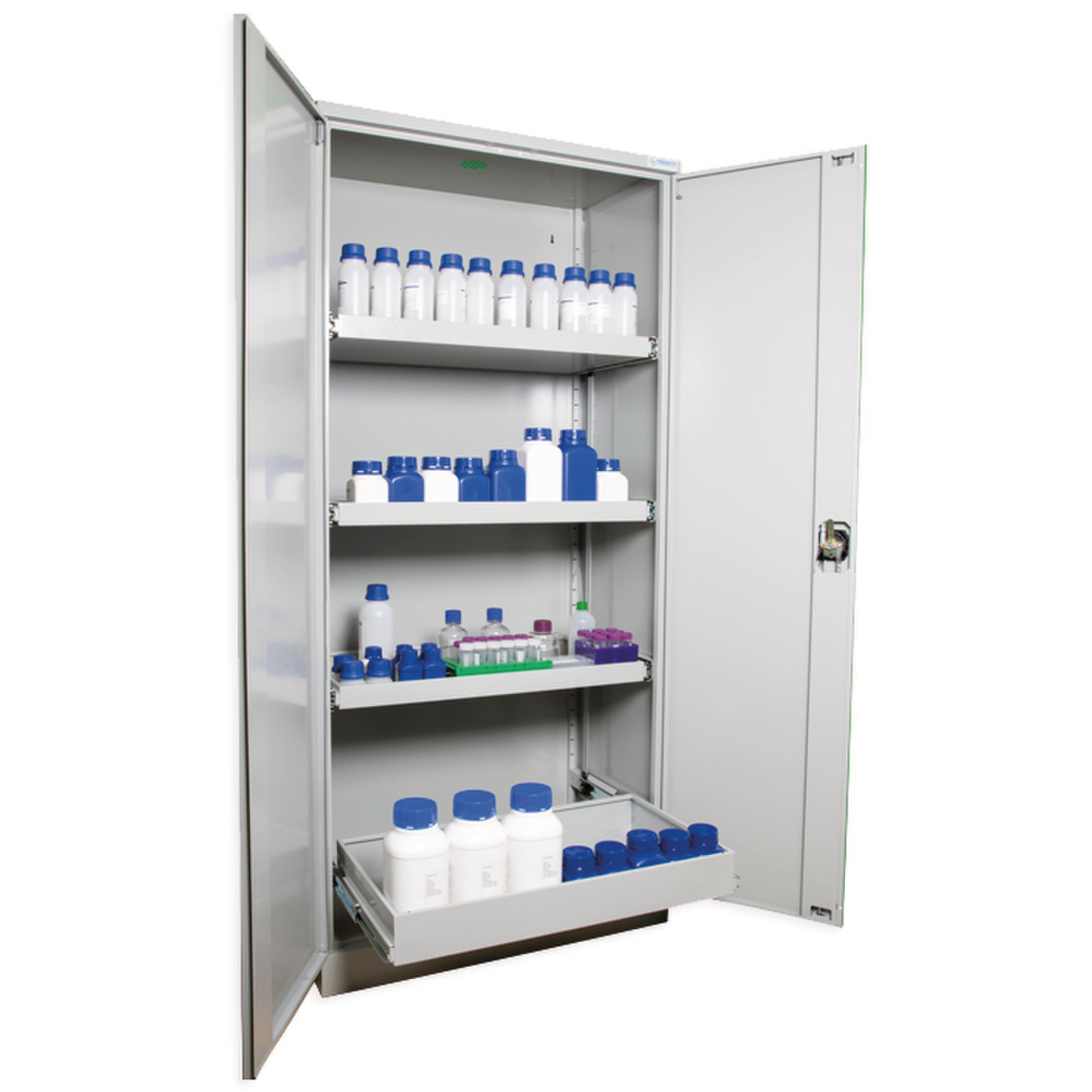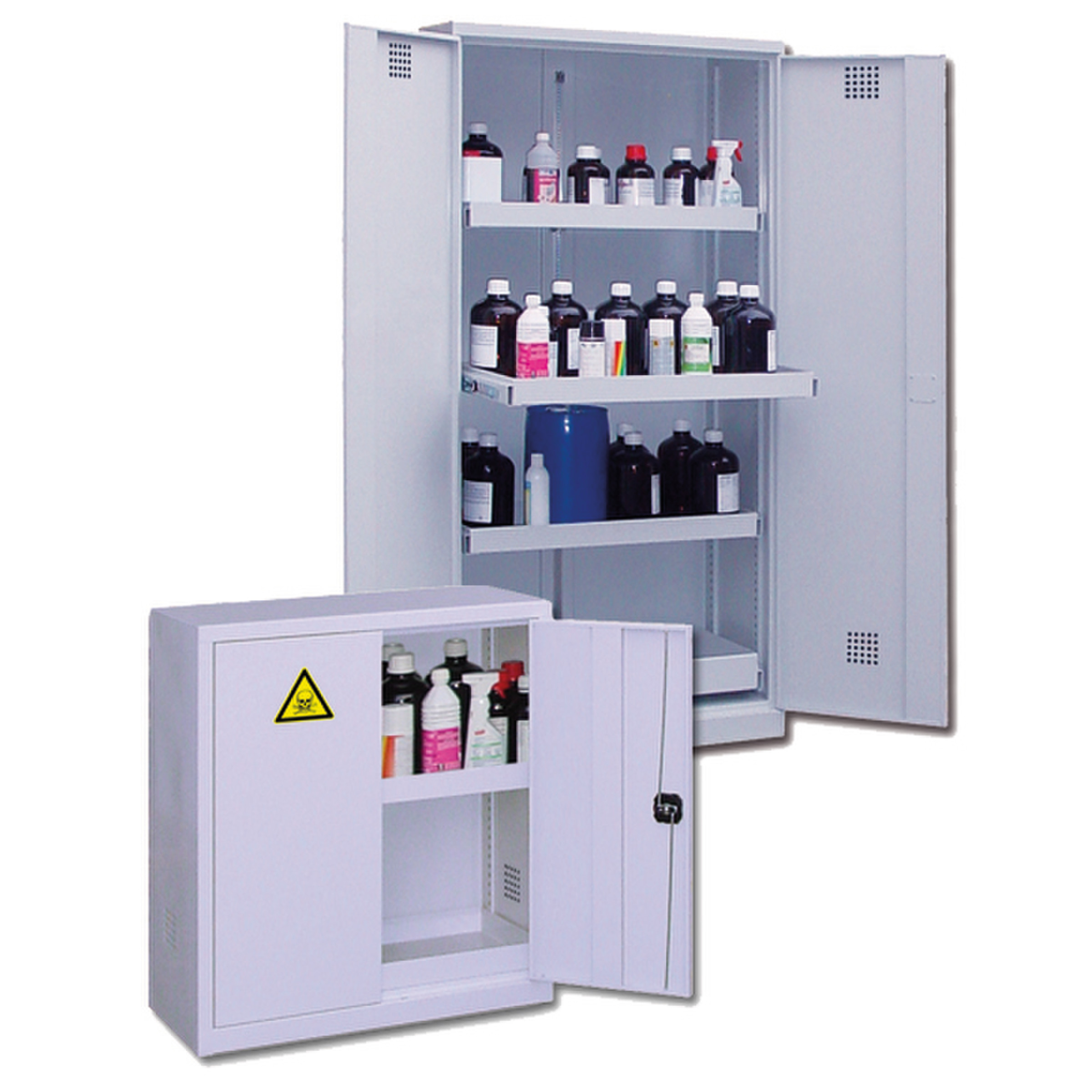 Modèles avec tiroirs.Stockage d'acides, bases, solvants, produits toxiques (ne conviennent pas au stockage de produits très corrosifs).
