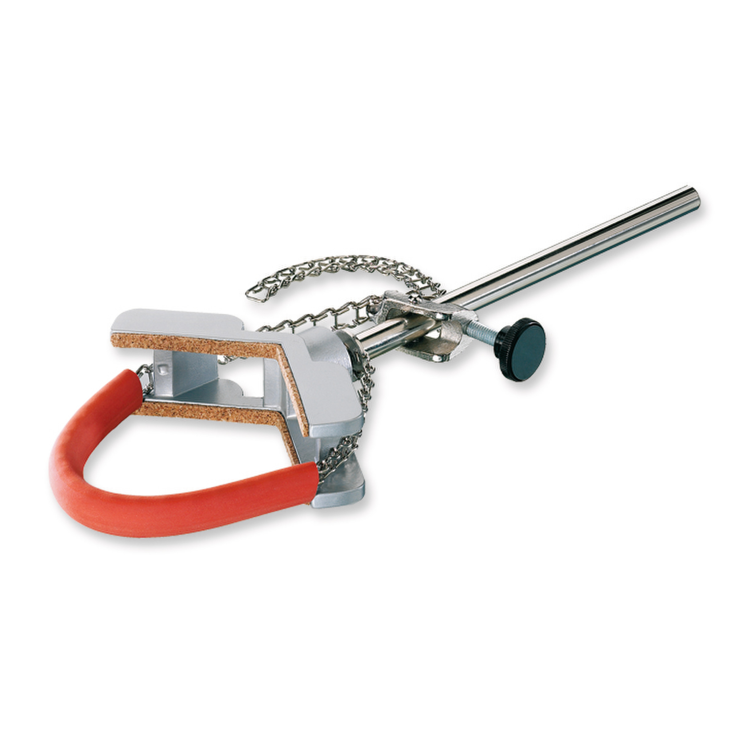 Pinces munies d'une chaîne type Vaucanson pour maintien de contenants Ø 40 à 170 mm.
