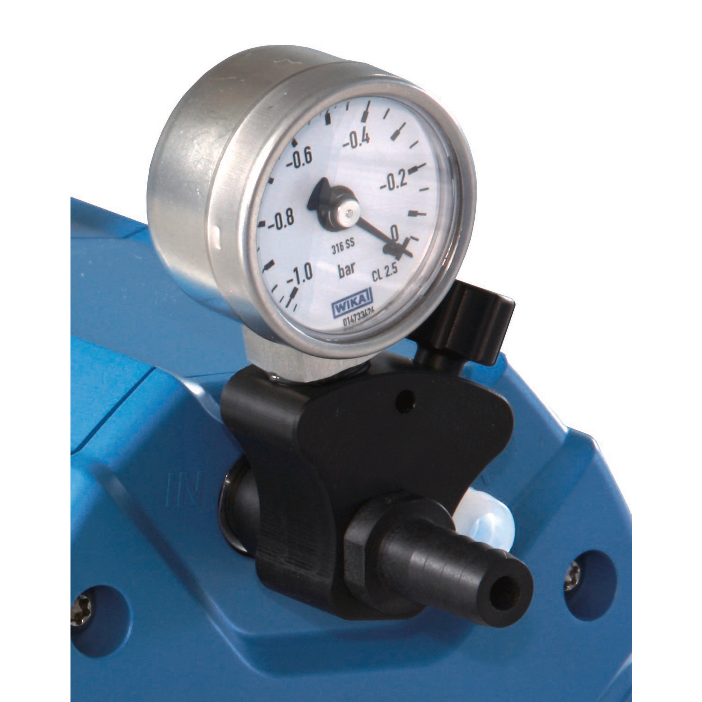 Vanne manuelle optionnelle avec manomètre pour réglage précis et continu du débit.