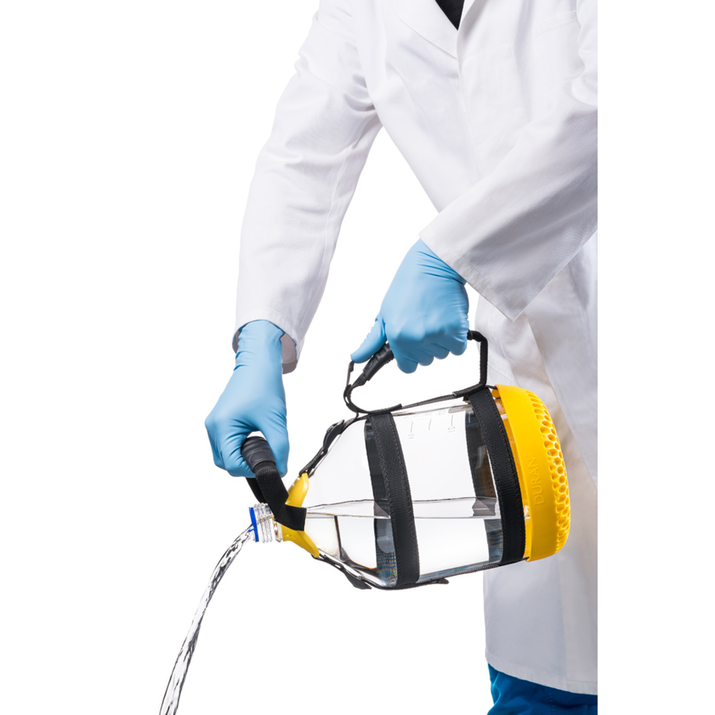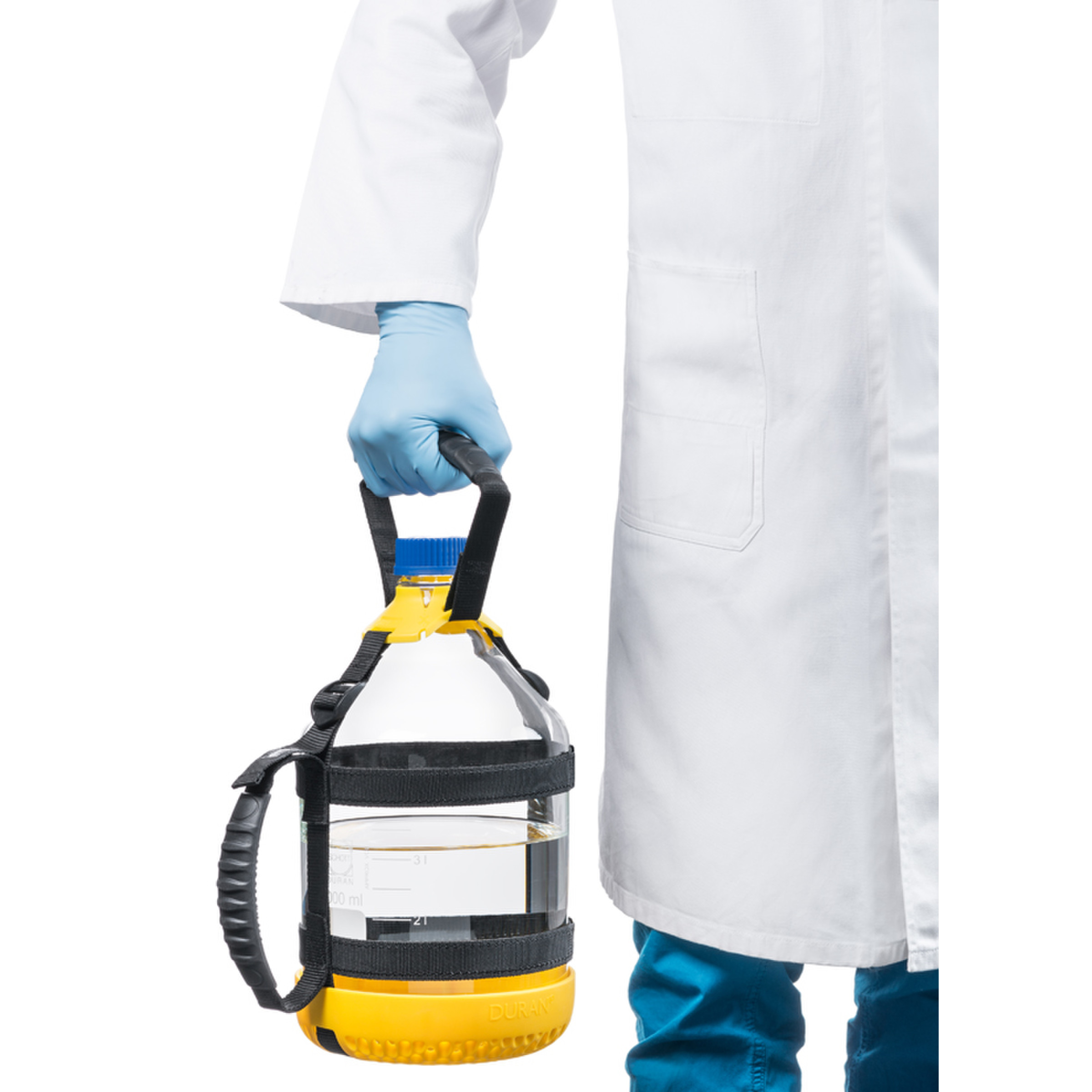 Transport aisé et sécurisé des flacons ISO GL45 de 2, 5, 10 et 20 litres.