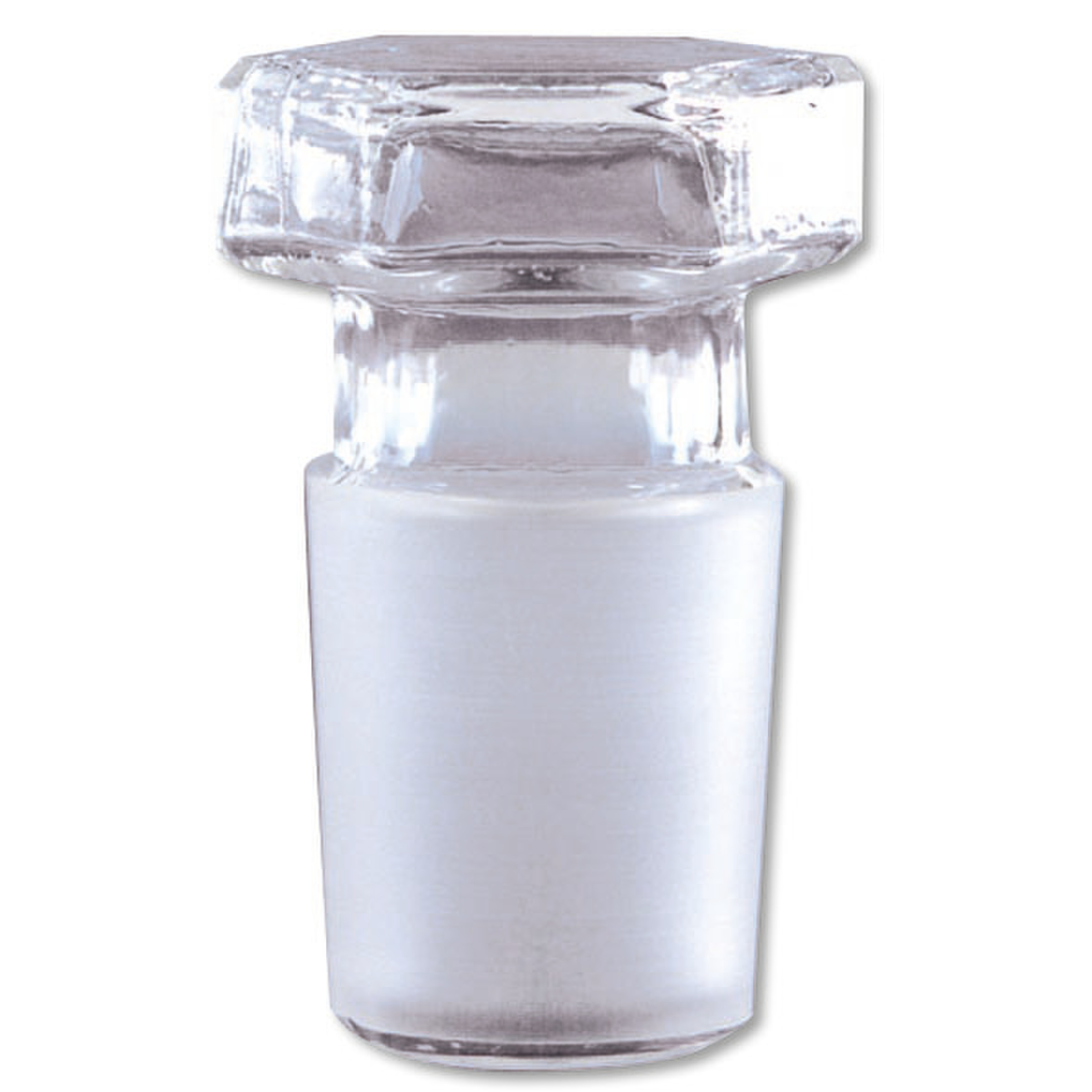Bouchons en verre borosilicaté blanc ou ambré à tête hexagonale avec rodage normalisé, de différents types: